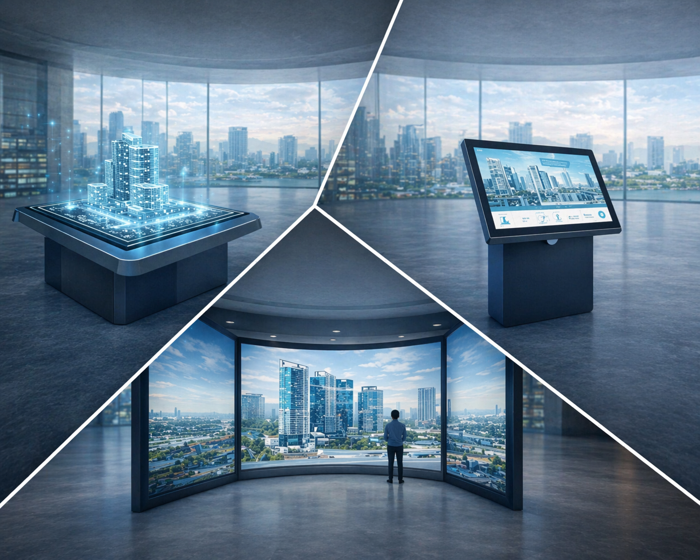 Which immersive real estate setup actually helps developers sell better? Compare hologram tables, touchscreen kiosks, and immersive rooms by sales use case, buyer journey, and commercial value.