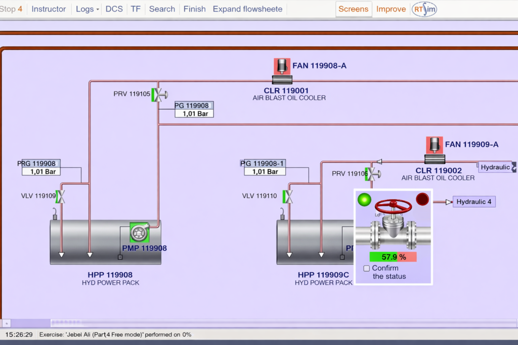 Using HTC VIVE headsets, trainees can navigate the virtual plant and perform simulated tasks in a way that closely reflects real operator interaction with the environment.